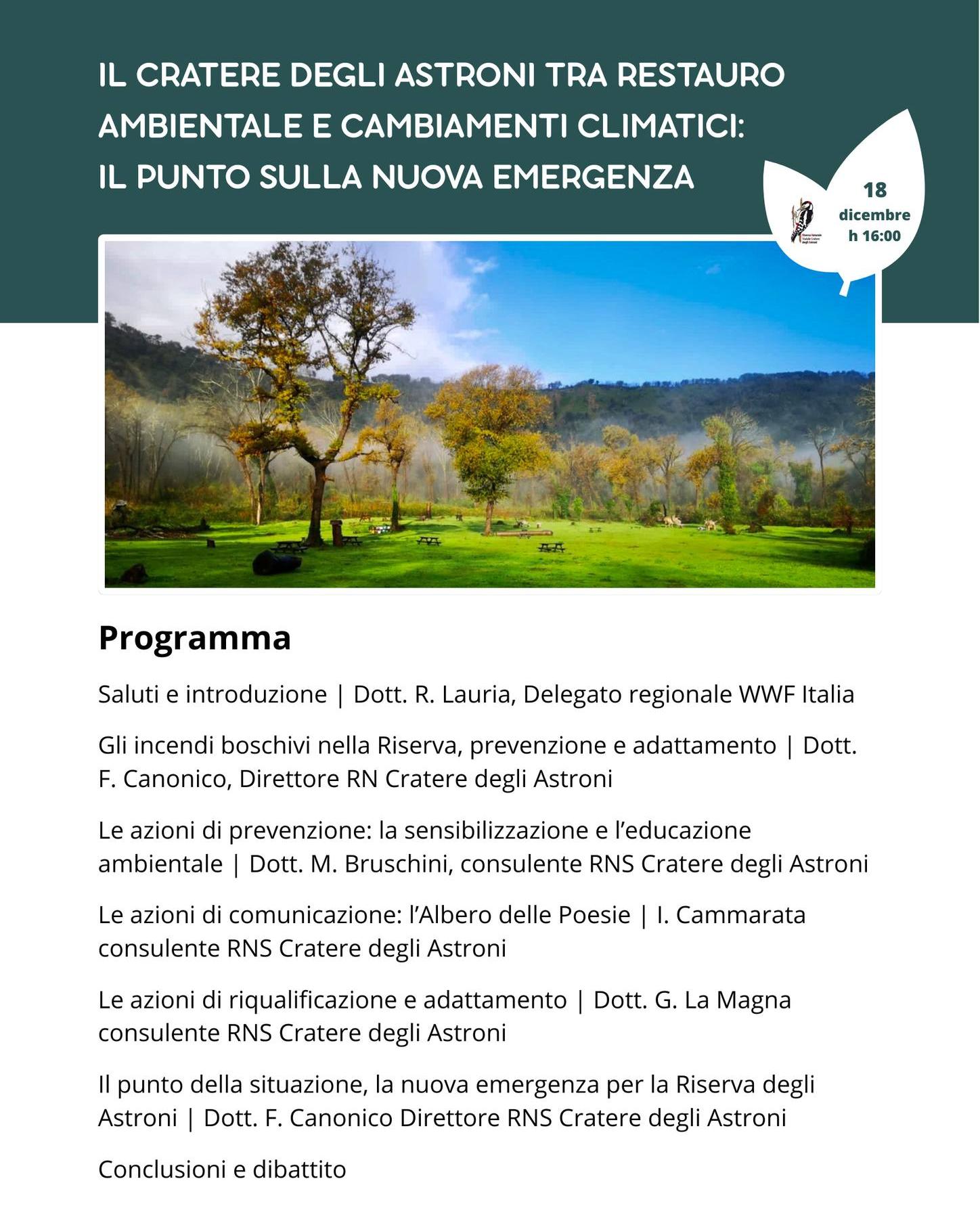 Dic 18 16:00 - 18:00 Il Cratere degli Astroni tra restauro ambientale e cambiamenti climatici: il punto della nuova emergenza Riserva Naturale Statale Cratere degli Astroni Via Sartania, 48, Napoli, NA, Italia, Napoli Evento Details Get Directions