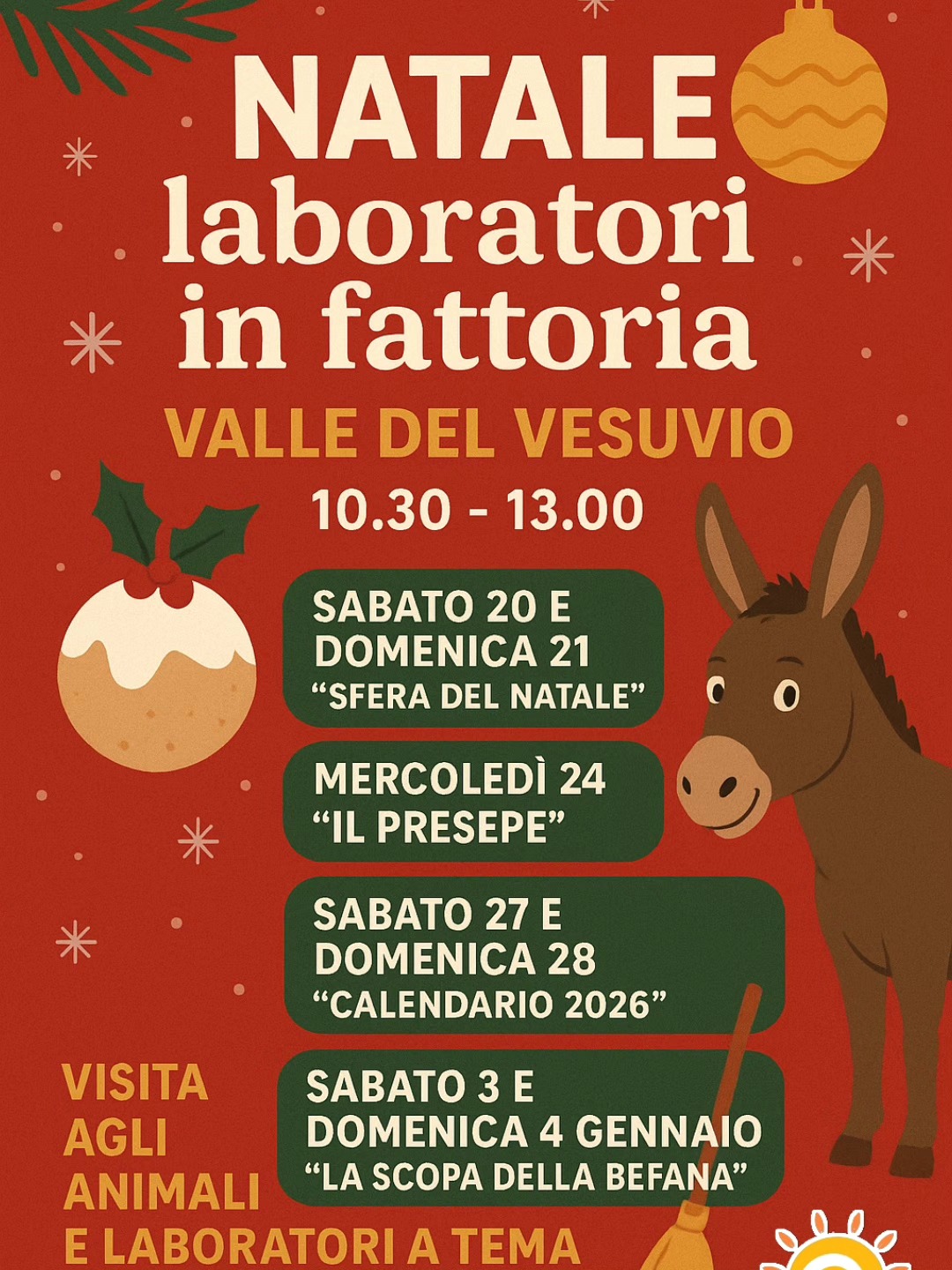 Gen 4 10:30 - 13:00 Natale – Laboratori in fattoria Valle del Vesuvio - Fattoria didattica Via Villanova 18/B, Ercolano Evento Details Get Directions