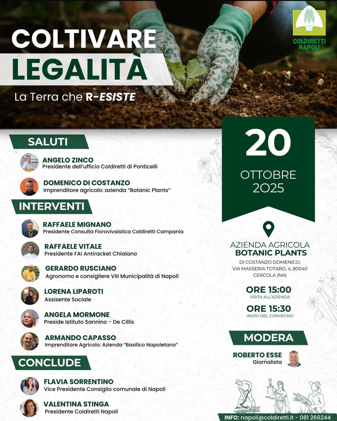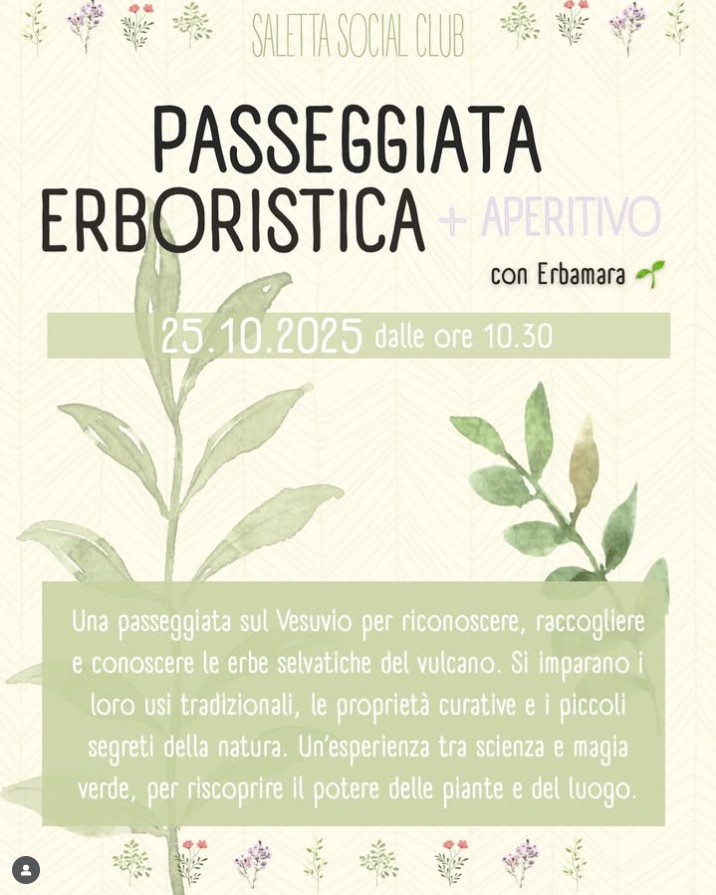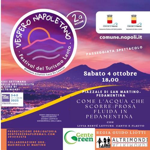 | 1 evento, ![]() Orari: Dalle 15:00 La Coldiretti Napoli organizza il convegno "Coltivare Legalità - La Terra che R-ESISTE”, per un momento di... | 2 eventi, ![]() Orari: Dalle 18:30 SuperOtium presenta il libro di Cosimo Terlizzi "Dal giardino – riconciliarsi con il selvatico" e il ciclo... ![]() Orari: Dalle 9:00 alle 12:30 Il Collettivo Viviani organizza un hackathon (evento al quale partecipano, a vario titolo, esperti di... | 0 eventi, | 0 eventi, | 3 eventi, ![]() Orari: Dalle 18:30 alle 21:30 Venerdi 24 ottobre a partire dalle 18.30, la Bicycle House in Galleria Principe, a Napoli... ![]() Orari: Dalle 17:30 La pace a Gaza, che ha visto Trump protagonista con al seguito tutti i leader politici lacché... ![]() Orari: Dalle 8:30 alle 18:00 La Società Italiana di Arboricoltura (SIA) Onlus organizza il convegno “Verde e città. La qualità... | 6 eventi, ![]() Orari: Dalle 10:00 Salandra Lovers organizza un’esperienza speciale di connessione profonda con se stessi, con gli altri e con la... ![]() Orari: Dalle 16:30 alle 19:30 Un trekking urbano dal sapore naturalmente selvaggio, tra vigneti, antiche masserie e scorci mozzafiato sulla città di... ![]() Orari: Dalle 9:00 alle 15:00 L’antico Complesso Monumentale di Santa Maria della Vita, nel cuore del Rione Sanità, apre le... ![]() Orari: Dalle 9:15 Napoli Obliqua organizza un percorso di trekking urbano, alla scoperta della Posillipo più nascosta e autentica. Un'esperienza... ![]() Orari: Dalle 10:30 "Saletta Social Club" organizza una passeggiata tra i sentieri antichi del Vesuvio, dove la terra fuma e... ![]() Orari: Dalle 10:30 alle 12:00 Kora Aps organizza "PacciAMIAMO", un laboratorio ludico-didattico-esperienziale sulla pacciamatura. Il laboratorio è rivolto ai bambini... | 2 eventi, ![]() Orari: Dalle 9:00 Domenica 26 ottobre l’isola di Capri si prepara ad accogliere la 9ª edizione della Camminata Nazionale tra gli... ![]() Orari: Dalle 10:00 Nell’ambito del Progetto Napoli Rurale, Locus Iste e Metadventures ti guideranno da San Martino al Monte Echia... |