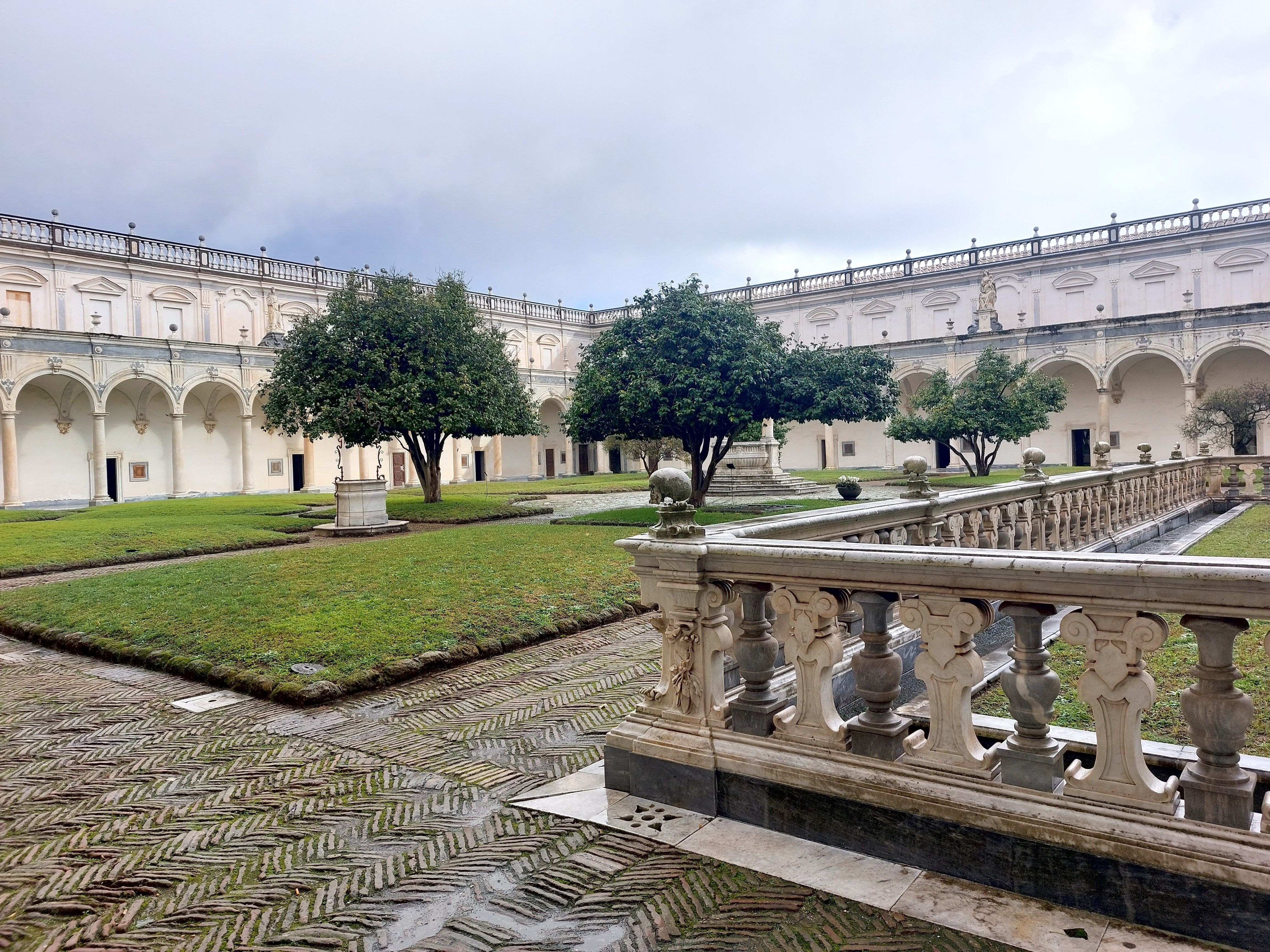 La splendida Passeggiata dei monaci, che abbraccia la certosa da ponente a levante, con i suoi pergolati circondati da araucarie, abeti, noci e ulivi, sovrasta i terrazzamenti della vigna che digrada a mezza valle interrotta dalla costruzione del Corso Vittorio Emanuele, la grande arteria orizzontale voluta da Ferdinando II di Borbone nel 1853 per collegare la città antica con i ridenti affacci marini della costa occidentale di Mergellina.