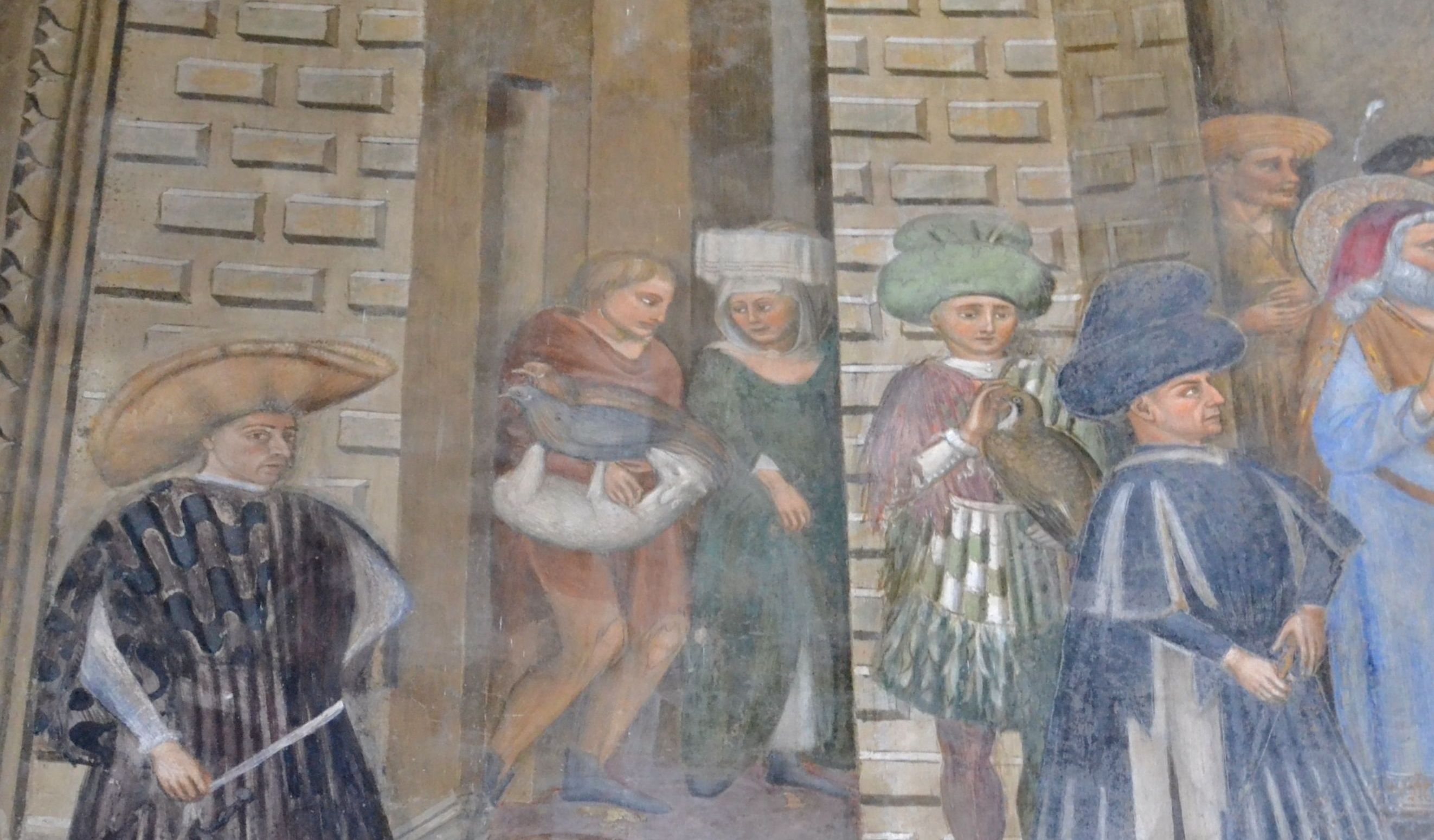 Senza dubbio la bellezza delle opere d’arte e la loro quasi straripante presenza, insieme al portato storico di cui abbiamo detto che la chiesa con le sue testimonianze conchiude, creano le condizioni per non riuscire spesso a soffermarsi con la dovuta attenzione su un ciclo di affreschi che decora il secondo ordine delle pareti della Cappella Caracciolo del Sole e che ha come tema Scene di vita eremitica, unico riferimento in questo ambiente se vogliamo alla spiritualità dei padroni di casa, i monaci agostiniani. Eppure ad adagiarsi sulle amene scene in cui predominano le cromie della terra, l’occhio pare potersi riposare dalle rutilanti bizzarie mistiche e dalle vivaci e indaffarate scene quotidiane raffigurate nell’ordine superiore dove pure campeggia il presunto ritratto del celebre Sergianni.