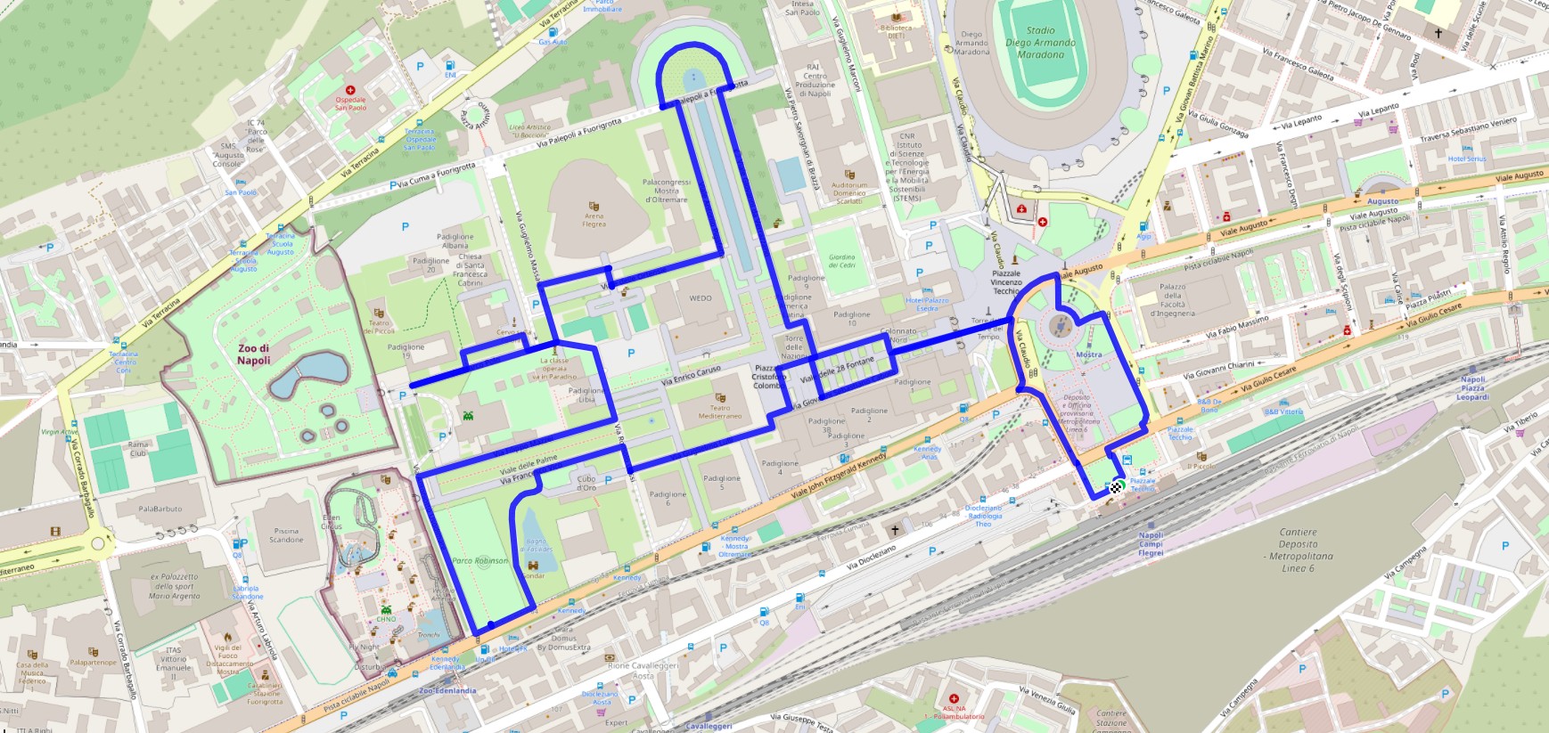 Per tutti i bambini, sia quelli che pedalano che quelli che stanno imparando ad andare in bicicletta, una grande palestra sono i sessanta ettari di parco verde della mostra d’Oltremare, un luogo stupendo da visitare in bici, con itinerari naturalistici, storico ed architettonici che si fondono ed a cui si aggiunge la magia di un’area completamente chiusa al traffico di auto. La zona è pressoché pianeggiante, con due discesine ai lati della Fontana dell’Esedra, che faranno esaltare i bambini, meno i genitori.