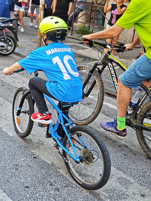 A dispetto di quanto si pensi, Napoli è una città per andare in bici. Avete mai pensato che il giro intorno alla fontana del Nettuno in piazza Municipio è un piccolo velodromo per bambini?
