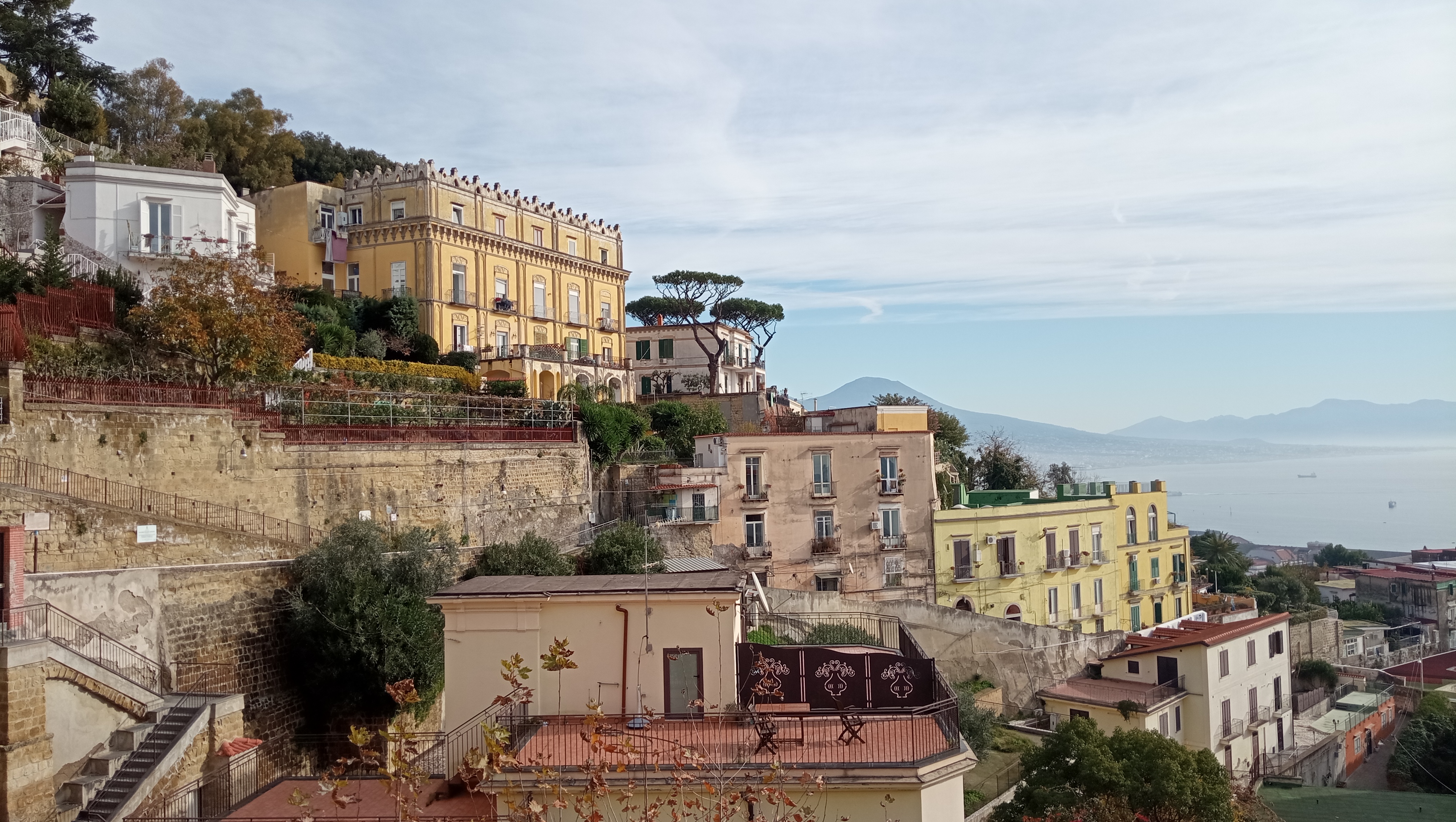 Dal piazzale San Martino, scendendo le scale del Petraio e passando per San Carlo alle Mortelle, siamo giunti al Monte Echia. Un percorso ricco di affacci panoramici, macchie verdi, scale e stradine pedonali che, pur attraversando il centro storico della città, restano silenziose, a tratti ancora rurali, lontane dal caos cittadino della prima domenica di dicembre.